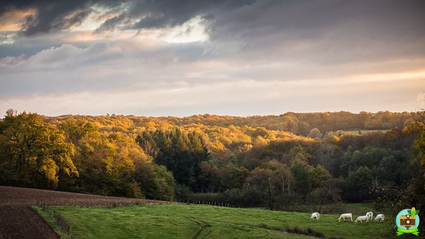 Les collines douces, baignées de couleurs dorées et orangées, accueillent paisiblement les emblématiques bœufs charolais. Une scène à la fois vivante et apaisante qui reflète toute la richesse de la campagne bourguignonne.