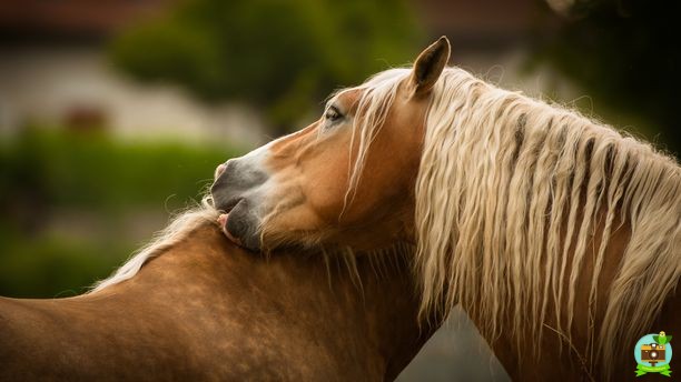 Cette photographie capture un moment touchant où un cheval comtois mordille doucement l’encolure de son frère, geste typique de complicité et d’affection.
